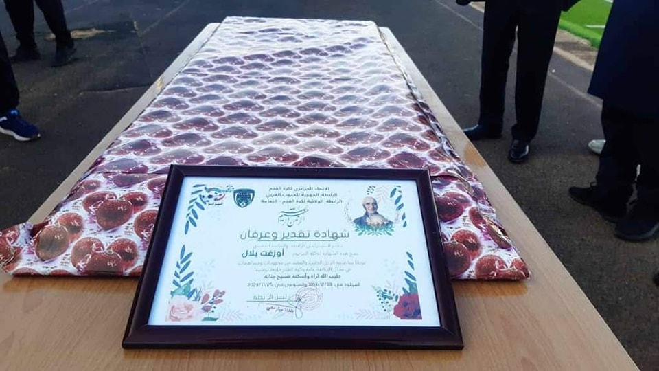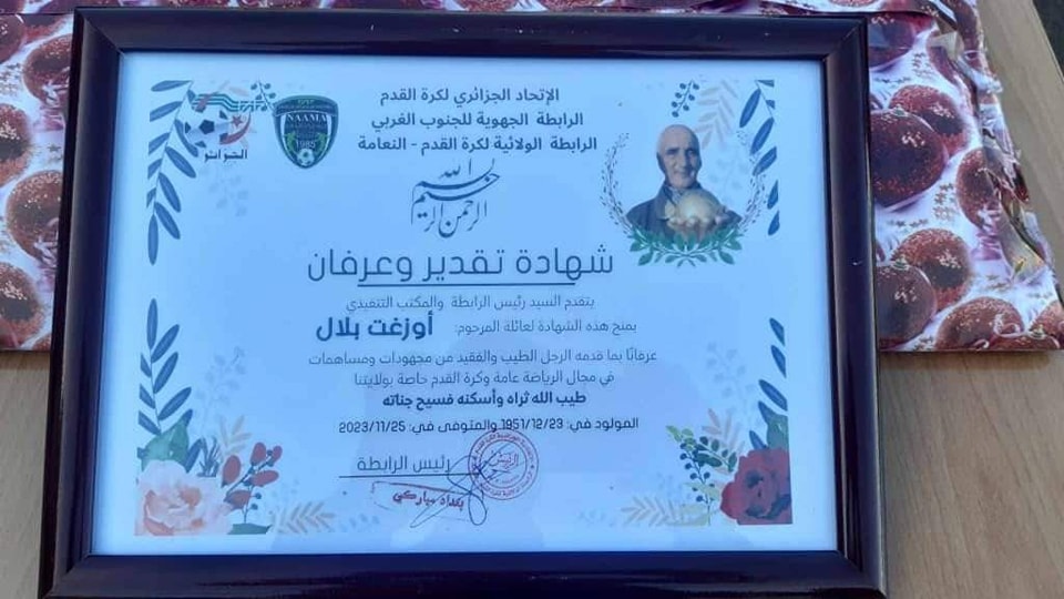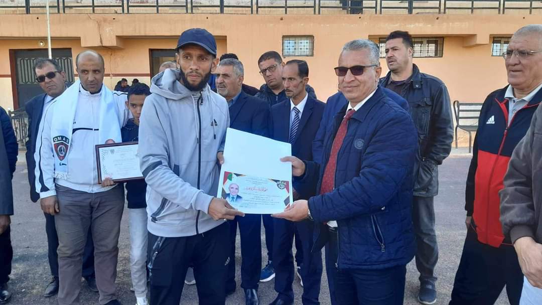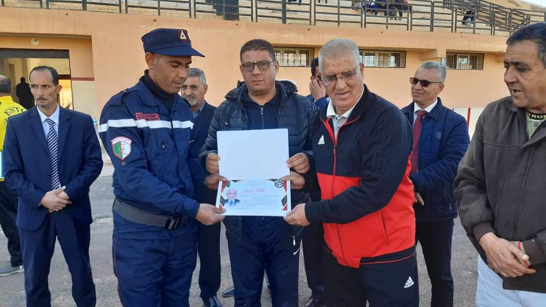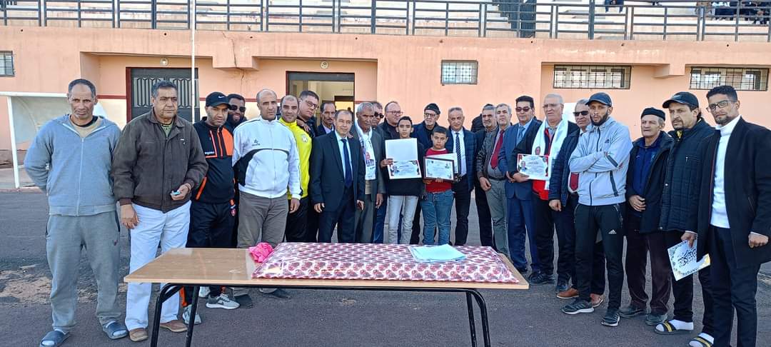 بمناسبة انطلاق البطولة الولاية لكرة القدم في اول لقاء بين اولمبيك المدرسة عين الصفراء و فريق قلعة الشيخ بوعمامة مغرار و تخليدا لروح الفقيد عضو رابطة كرة القدم المرحوم اوزغت بلال تم اليوم تكريم عائلة المرحوم و اعطاء اشارة انطلاق البطولة بحضور اطارات الرياضة و رئيس مصلحة الرياضة ممثلا للسيد مدير الشباب و الرياضة بحضور اعضاء السيد بغداد مباركي رئيس الرابطة والسيد لعسكري الحبيب و ممثلي السلطات المحلية و بعض القطاعات الشريكة.