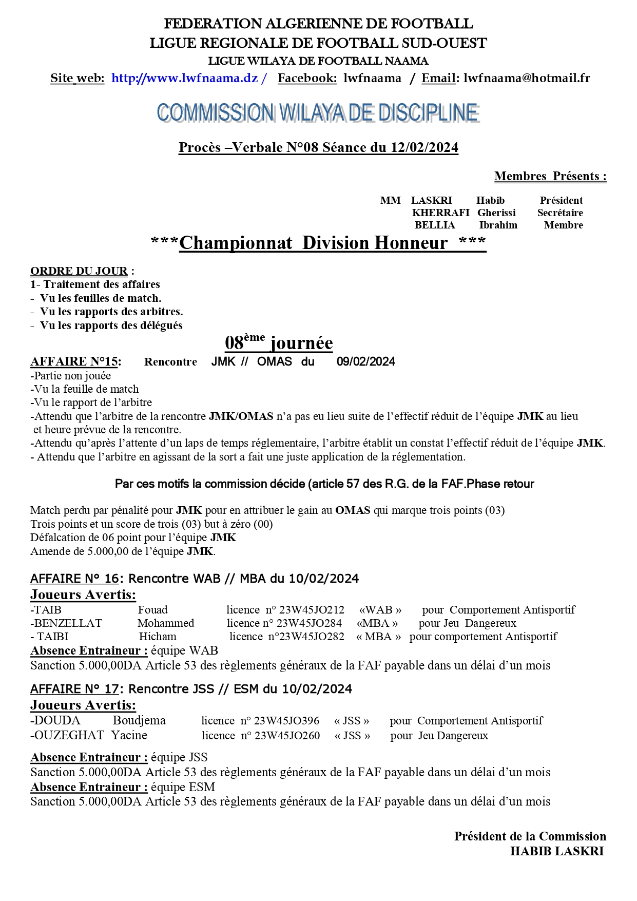 محضر لجنة الإنضباط رقم 08 أكابر الأكابر الرئيسية لجنة الإنضباظ 12 فبراير 202418 فبراير 2024 by admin محضر لجنة الإنضباط رقم 08 بتاريخ 12-02-2024
