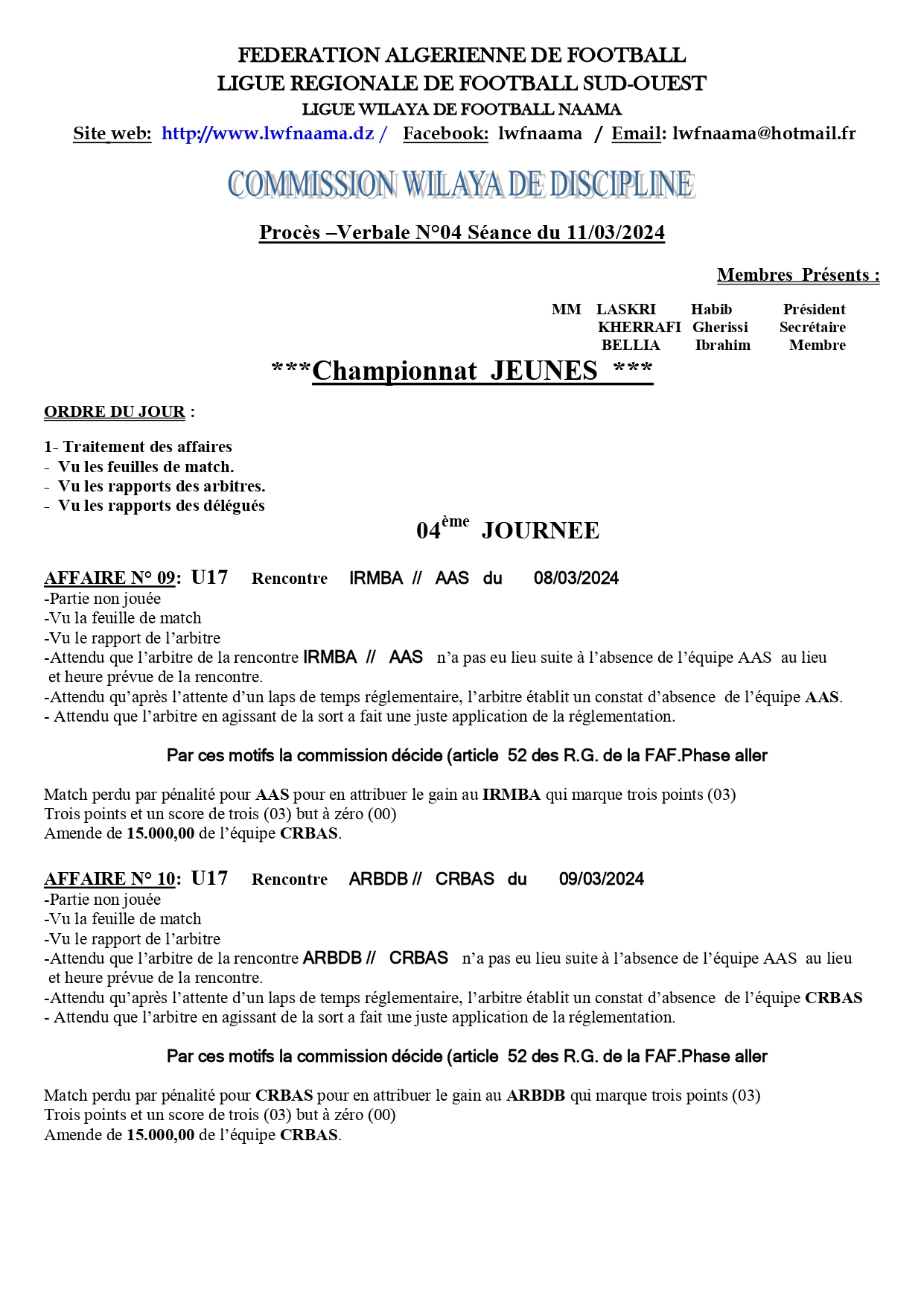 محضر لجنة الإنضباط رقم 04 شبان الرئيسية الشبانية لجنة الإنضباظ 11 مارس 202413 مارس 2024 by admin محضر لجنة الإنضباط رقم 04 بتاريخ 11-03-2024