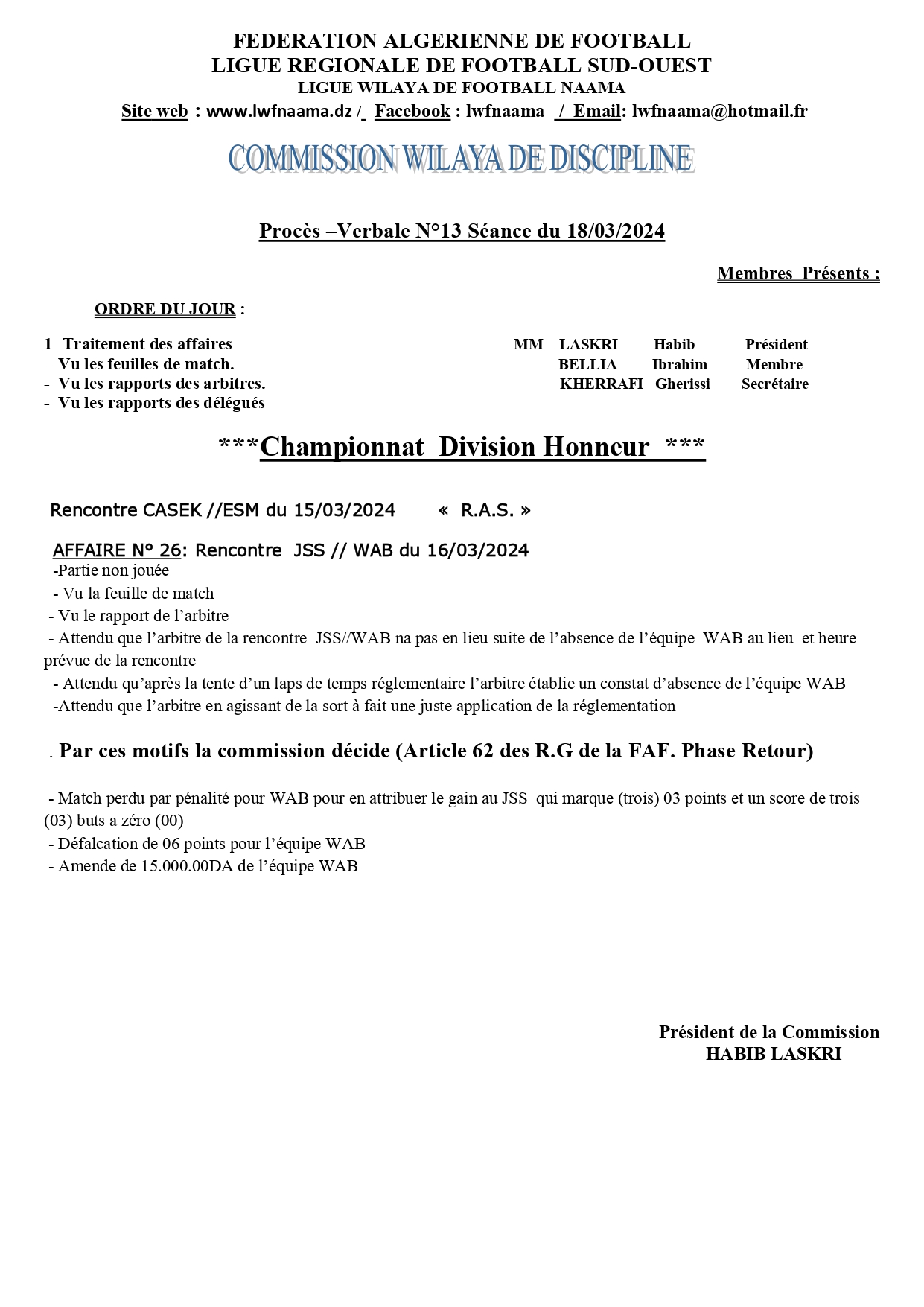 محضر لجنة الإنضباط رقم 13 أكابر الأكابر الرئيسية لجنة الإنضباظ 18 مارس 202419 مارس 2024 by admin محضر لجنة الإنضباط رقم 13 بتاريخ 18-03-2024