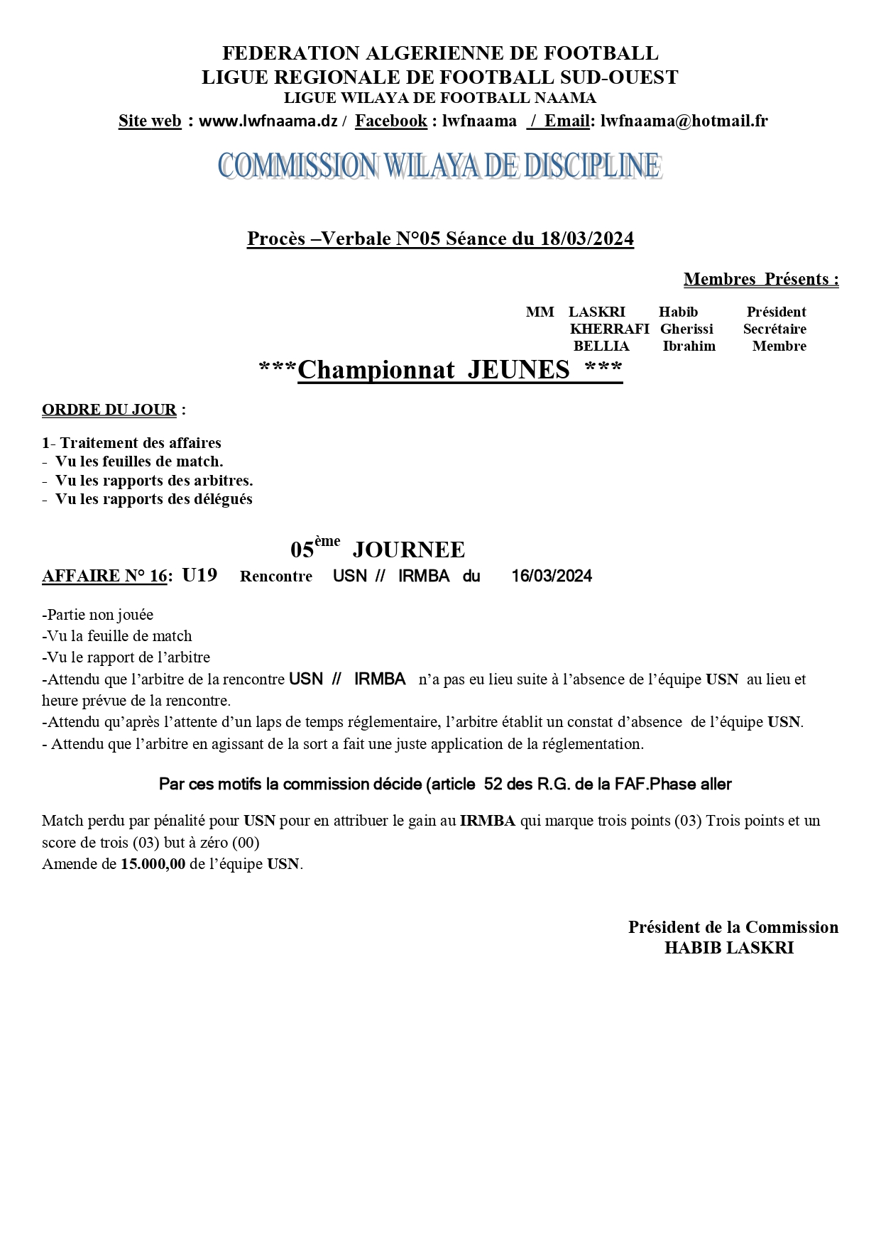 محضر لجنة الإنضباط رقم 05 شبان الرئيسية الشبانية لجنة الإنضباظ 18 مارس 202419 مارس 2024 by admin محضر لجنة الإنضباط رقم 05 بتاريخ 18-03-2024