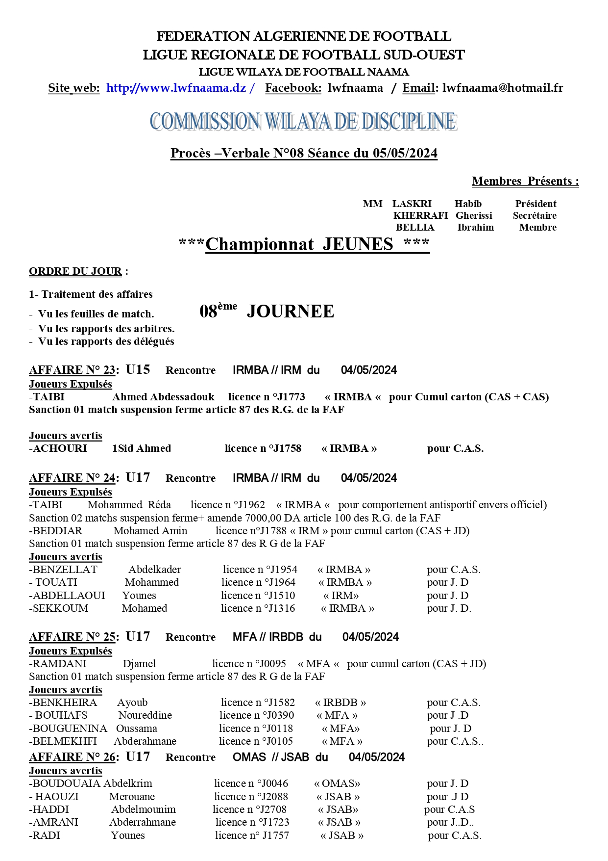 محضر لجنة الإنضباط رقم 08 شبان الرئيسية الشبانية لجنة الإنضباظ 5 مايو 202415 مايو 2024 by admin محضر لجنة الإنضباط رقم 08 بتاريخ 05-05-2024