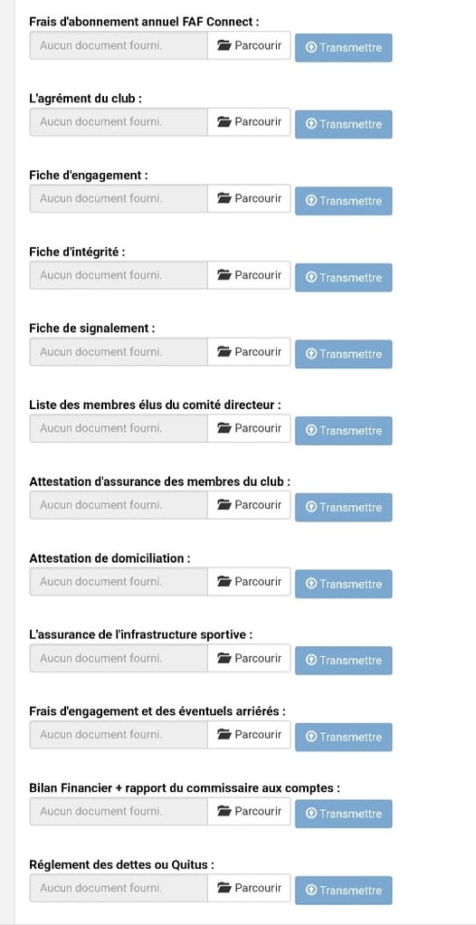 باقي الوثائق يحتفظ بها النادي ويقدمها عند الطلب.