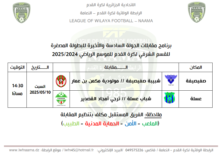 بين 1 جويلية 2025 و10 أكتوبر 2025 لفرق الرابطات الولائية.