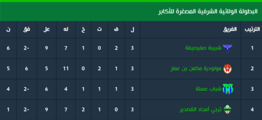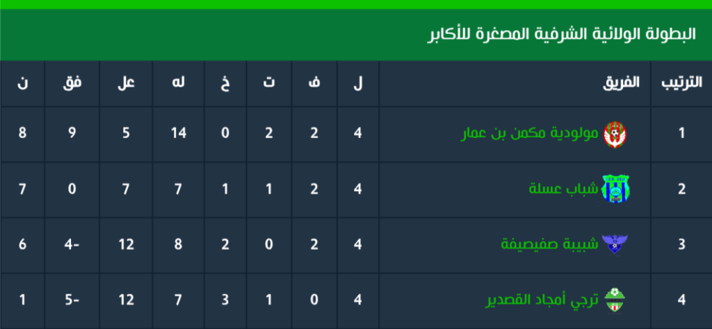 ترتيب البطولة الولائية الشرفية المصغرة للأكابر بعد نهاية الجولة الرابعة