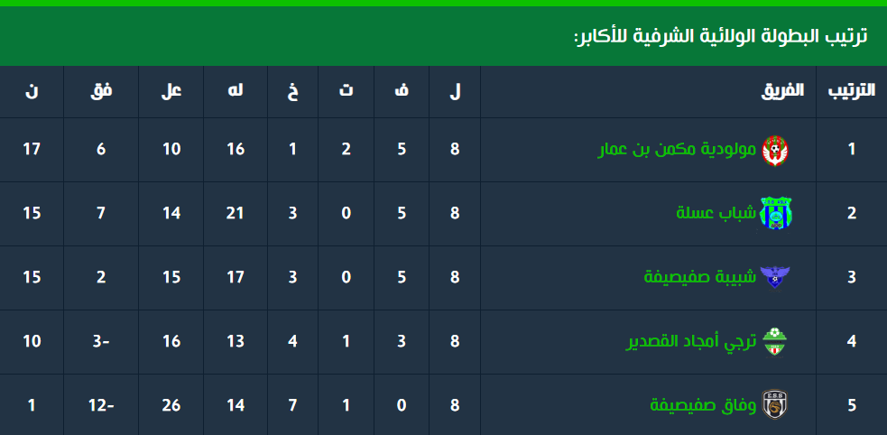 15 فبراير 2025 by admin ترتيب البطولة الولائية الشرفية للأكابر بعد نهاية الجولة العاشرة والأخيرة – الأربع فرق الأولى معنية بالبطولة المصغرة والتي ستحدد من يصعد للقسم الجهوي الثاني للجنوب الغربي.