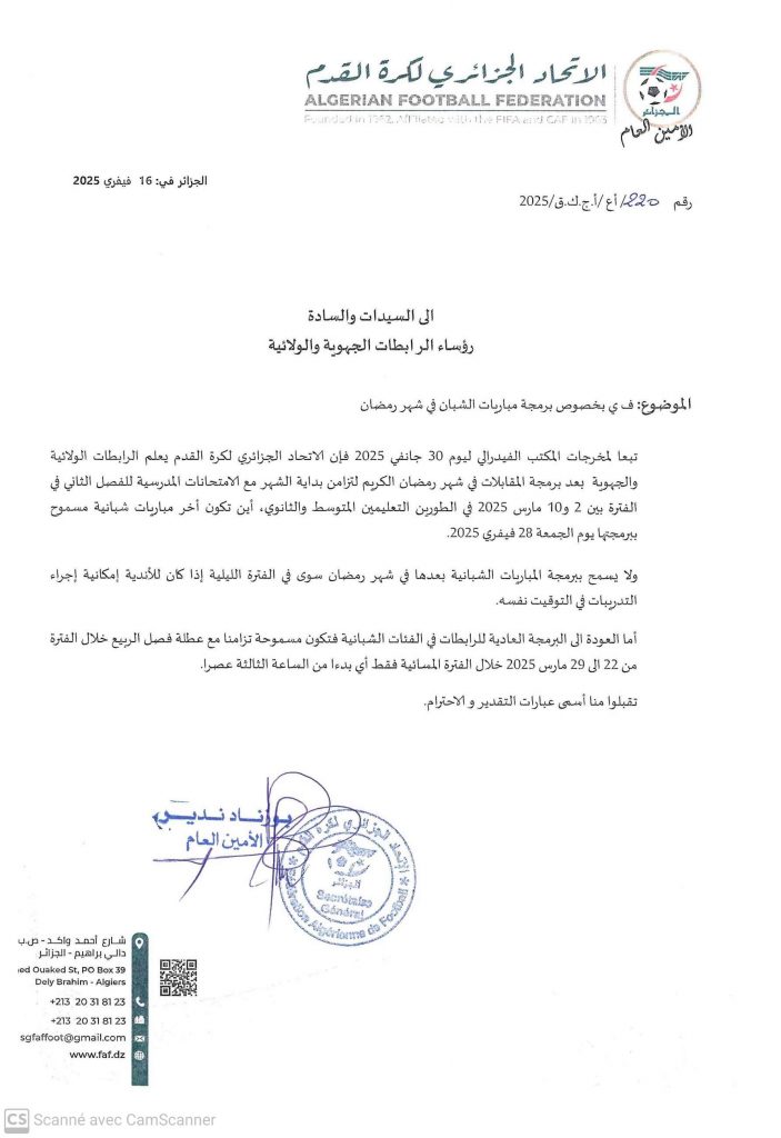 16 فبراير 202522 فبراير 2025 by admin بخصوص برمجة مباريات الشبان في رمضان بخصوص برمجة مباريات الشبان في رمضان