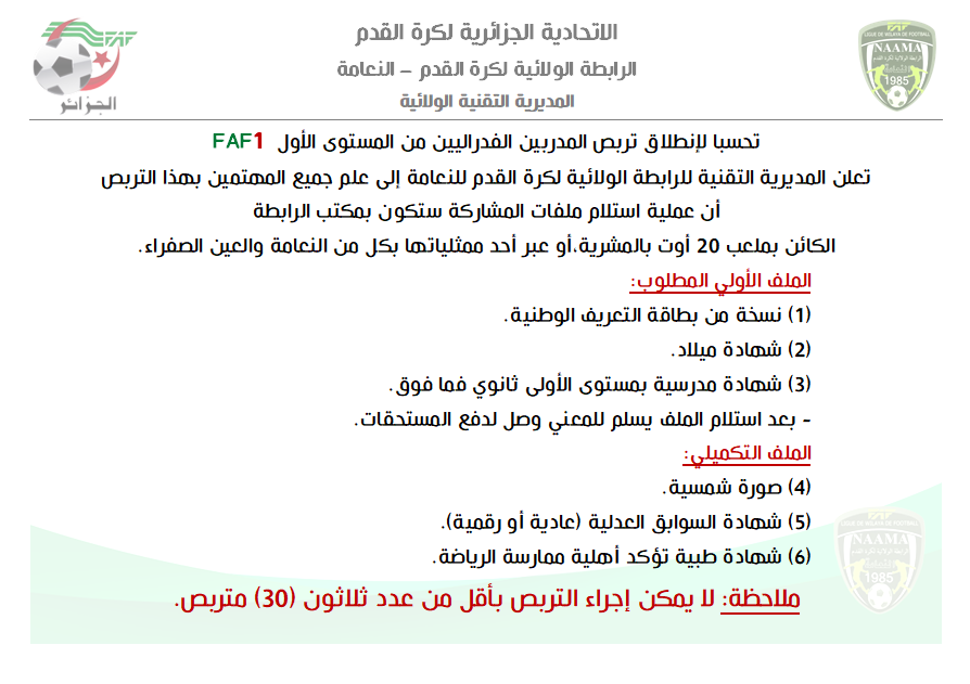 بمناسبة تعيين السيد وليد صادي وزيرا للرياضة في التعديل الحكومي الجديد، يتقدم السيد مباركي بغداد رئيس الرابطة الولائية لكرة القدم النعامة بإسمه و نيابة عن أعضاء المكتب التنفيذي بأصدق التهاني متمنين لكم النجاح والتوفيق في القيـام بالمهام المسندة إليكم.
