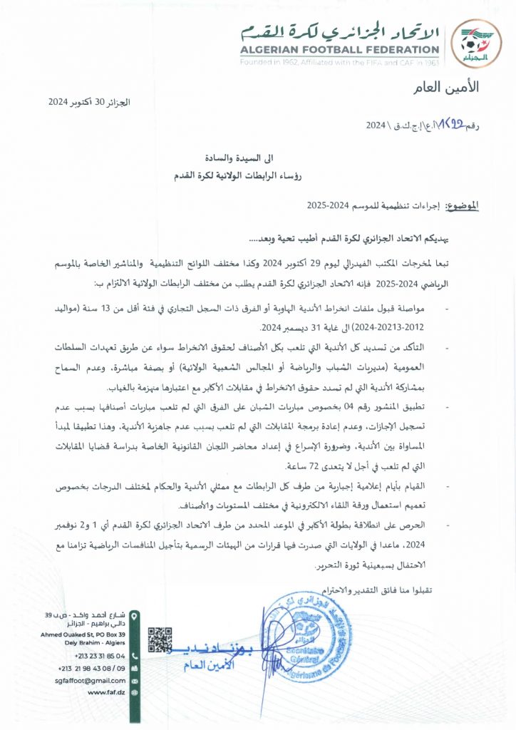 إجراءات تنظيمية للموسم 2024-2025