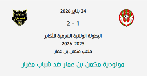 في إطار منافسات البطولة الولائية الشرفية للأكابر للموسم الرياضي 2025–2026، أُجريت خلال يومي 23 و24 يناير 2026 مباراتان تميزتا بالتنافس والندية بين الفرق المشاركة.